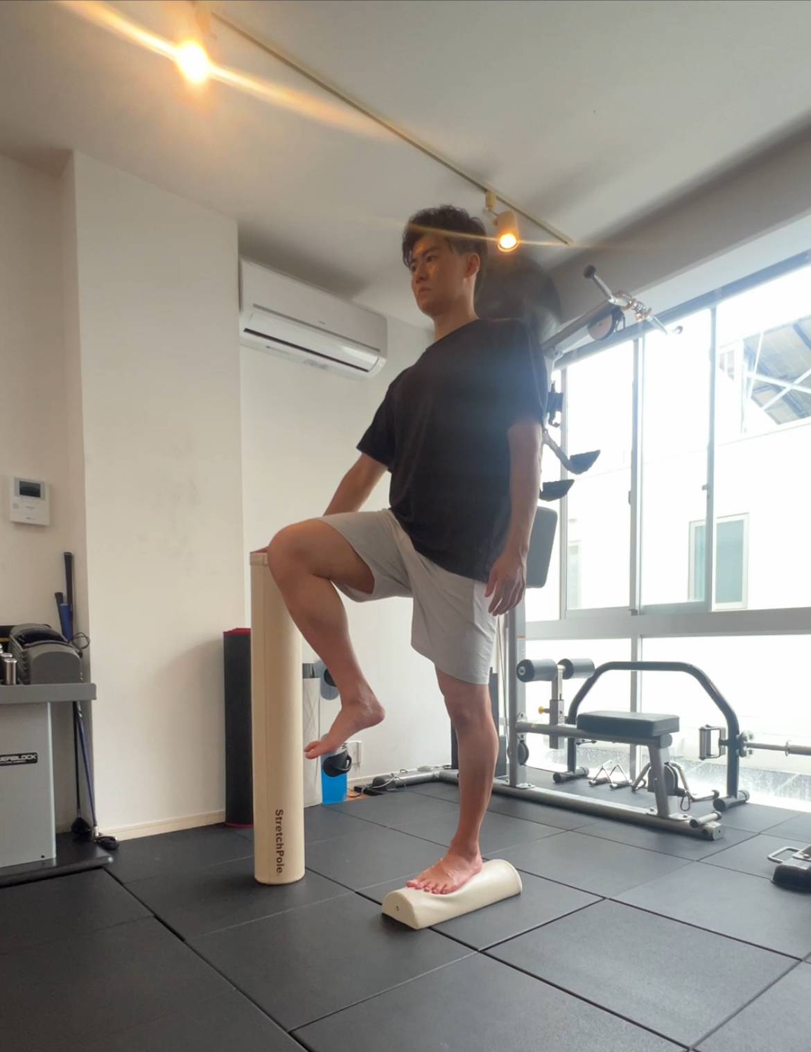 片足立ちでバランスを取りながら、足首の安定性を意識します。このエクササイズは腓骨筋を含む、足首周りの筋肉を集中的に鍛えられます。