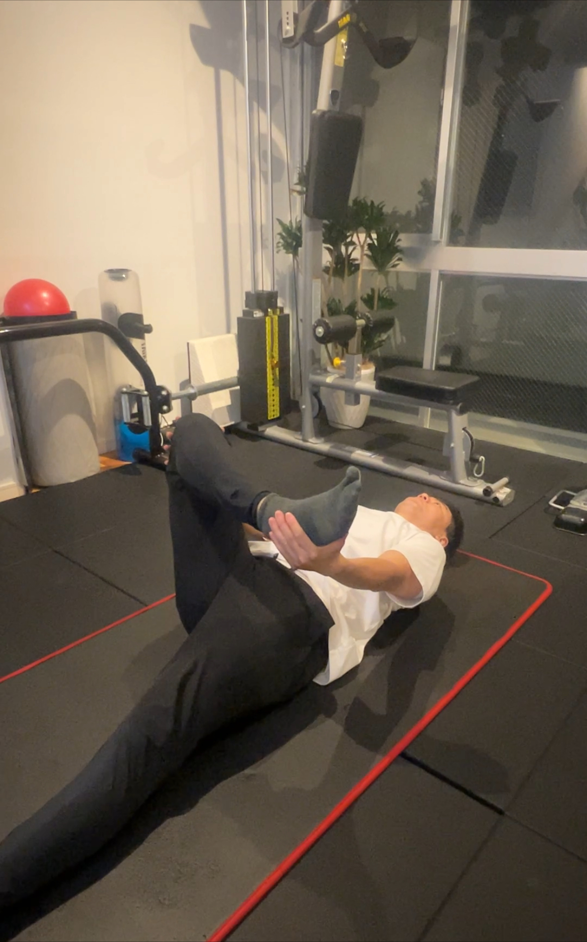 お尻の筋肉が伸びるのを感じながら30秒キープします。